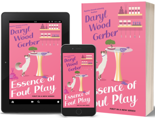Essence of Foul Play is the first book in veteran author Daryl Wood Gerber’s charming, fun, and magical new Aroma Wellness Mystery series and introduces readers to the quirky but often contentious residents of Carmel while solving a puzzling and ugly murder. Emma Brennan opens her new spa with its intriguing lineup of alternative self-care treatments in her hometown. Still, she encounters some surprising resistance to her business model, especially from her own mother and her college friend, Willow Shafer, a fellow spa owner who offers only traditional spa services. When Willow is found murdered the morning of Emma’s grand opening, Emma immediately becomes “a person of interest” in her death because a witness reported she saw Emma entering Willow’s business the night before.