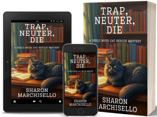 Trap, Neuter, Die is the first book in author Sharon Marchisello's new DeeLo Myer Cat Rescue Mystery series, featuring realistic and serious details related to the TNR program method for dealing with feral and/or community cat populations. When DeeLo Myer and her cat rescue mentor Catherine “Cat” Foster discover the body of a local cat enthusiast and bookstore owner while on the victim's property setting cat traps, they naturally are included on the police's suspect list. But when Cat is arrested by the local beat cop who has a grudge against her, DeeLo knows this is no time to pussyfoot around and starts her own investigation into the woman's murder.