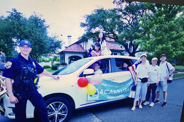 The multigenerational ACAESUSA team, composed primarily of youth from chapters across the country, brought remarkable energy and unity to the event. ACAESUSA Advisory Board Member and SMU Professor Dr. Zhihao Wu led the procession by driving the decorated float through the rain. Behind the scenes, silver-haired volunteers provided steadfast support—preparing water and parade gifts for the youth to distribute. Adult team members marched alongside the float, while the youngest participants joyfully tossed candy and small gifts to the cheering crowd.