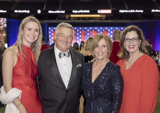 She recognized scholarship recipients as they stood, as well as veterans and those now serving in active duty as the crowd applauded in collective gratitude for their service. She also thanked sponsors, including Ryan as Commander in Chief sponsor; Trudy and Robert Wright, General Sponsors; The Stephenson Foundation, Patriot Mobile as Colonel Sponsors, and Major Sponsors Lydia and Bill Addy on behalf of the Addy Foundation, Aero, Aethon Energy, The Buster Family and Higginbotham Insurance and Financial Services